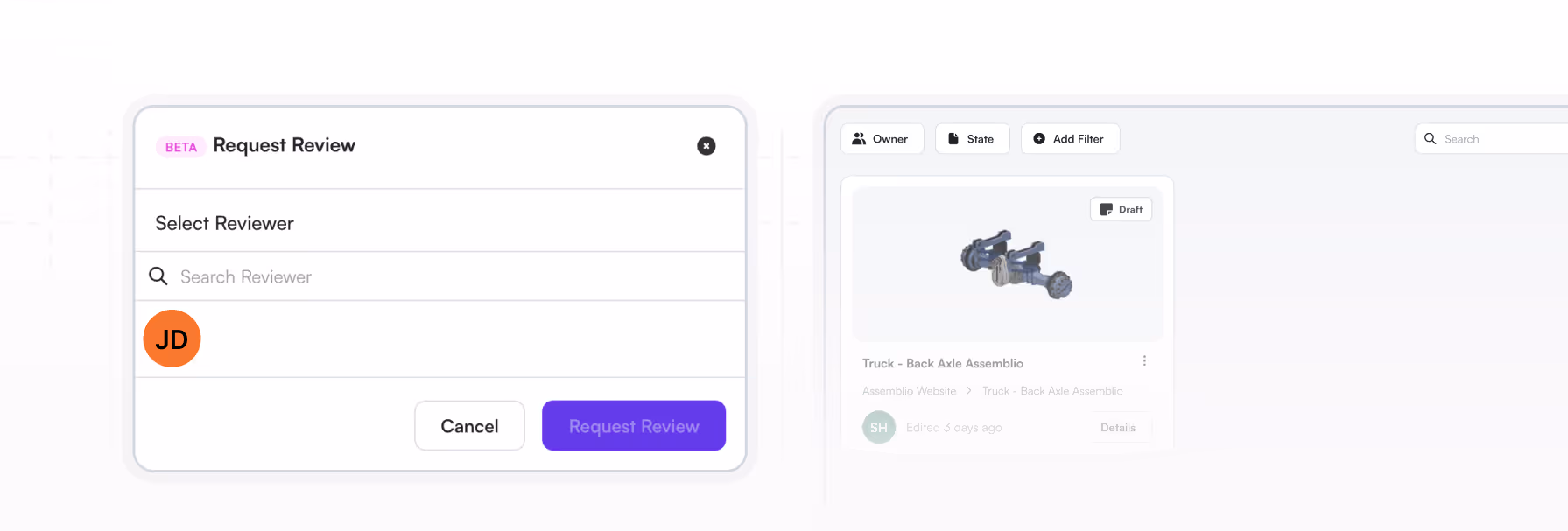 Mit Assemblio reduzieren Sie Rückfragen aus der Produktion und Abstimmungsaufwand mit angrenzenden Teams. Änderungen lassen sich schnell nachvollziehen, anpassen und weitergeben, für mehr Proesssicherheit und weniger Iterationen.